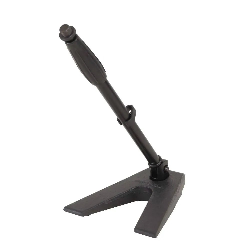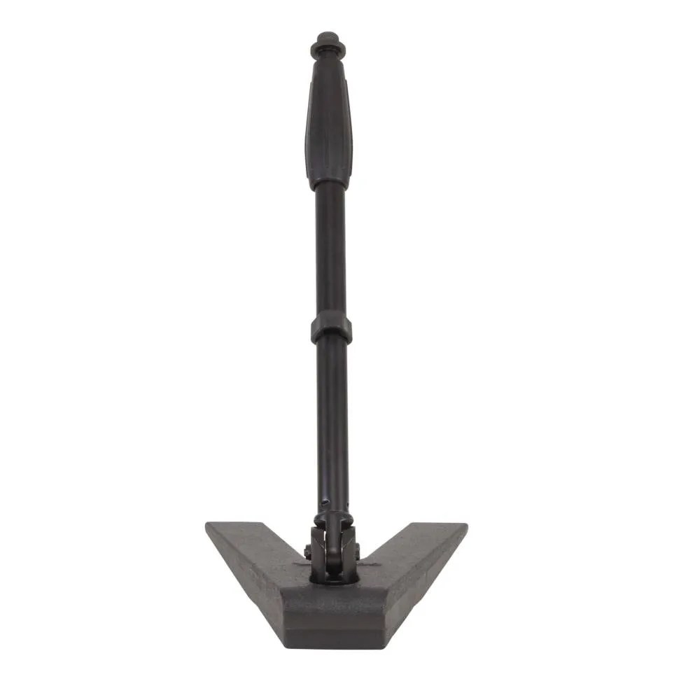 Triangular desktop heavy cast iron base with telescopic boom. Black colour.