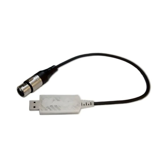 “El adaptador MagicDMX Full USB a DMX ofrece un universo completo de salida DMX sin límite de tiempo. Tiene la opción de ser usado como Salida, o como Entrada permitiendo su uso para monitorear DMX.