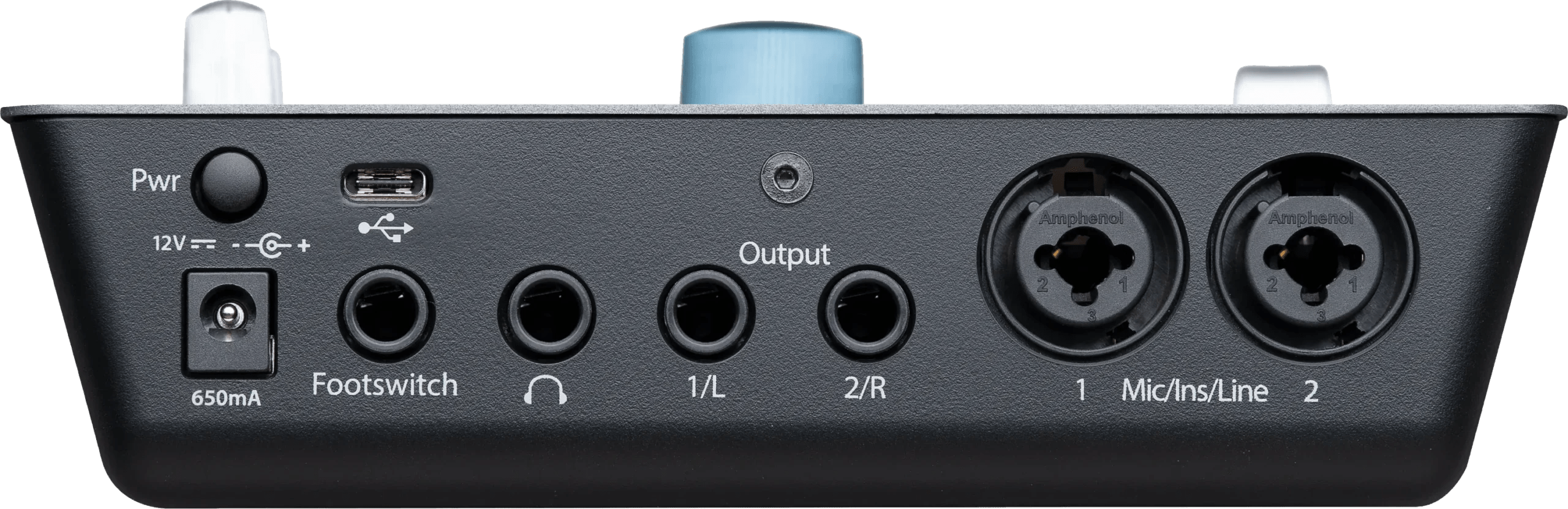 24-bit/192 kHz audio interface with 2 mic/instrument/line inputs with XMAX mic preamps, 2 balanced ¼-inch TRS main outputs, headphone output with independent level control