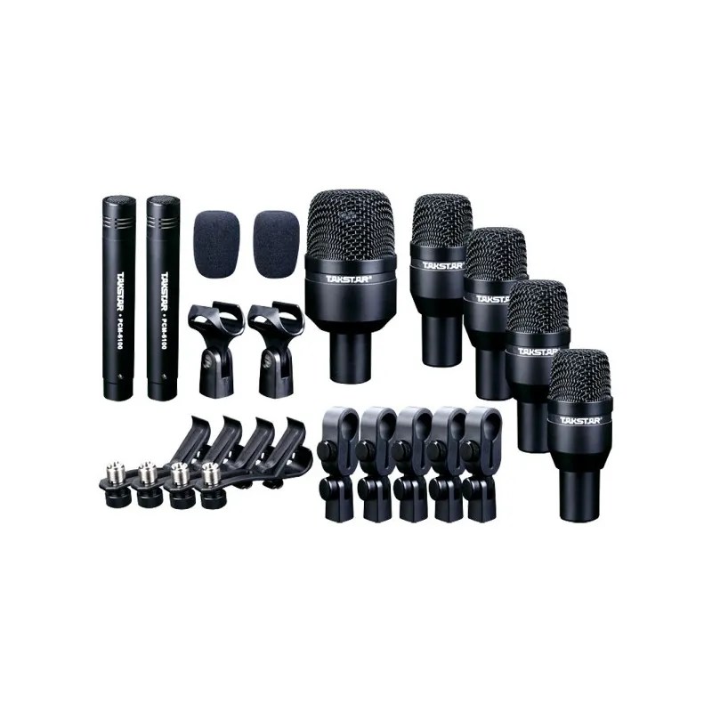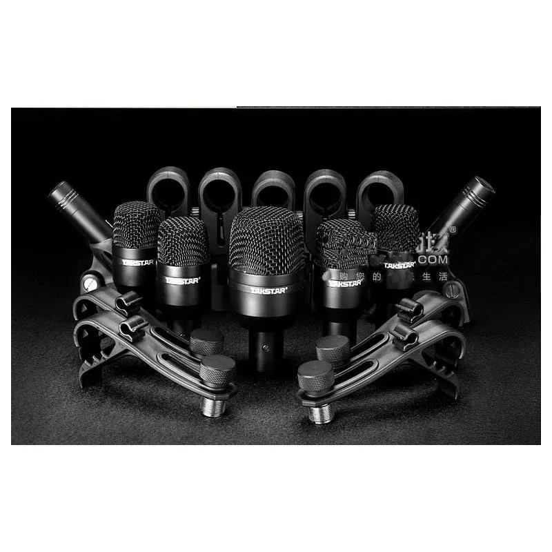 Kit de micrófonos TAKSTAR DMS-D7 para bateria con rasgos característicos electroacústicos avanzados, es la mejor opción para la grabación de batería. Equipa Micrófono de Bombo con respuesta completa de baja frecuencia para el efecto de graves fuerte y dinámicos. Micrófonos para toms y redoblante y micrófonos de condensador de alta resolución de frecuencia para registro de platillos y hi hat