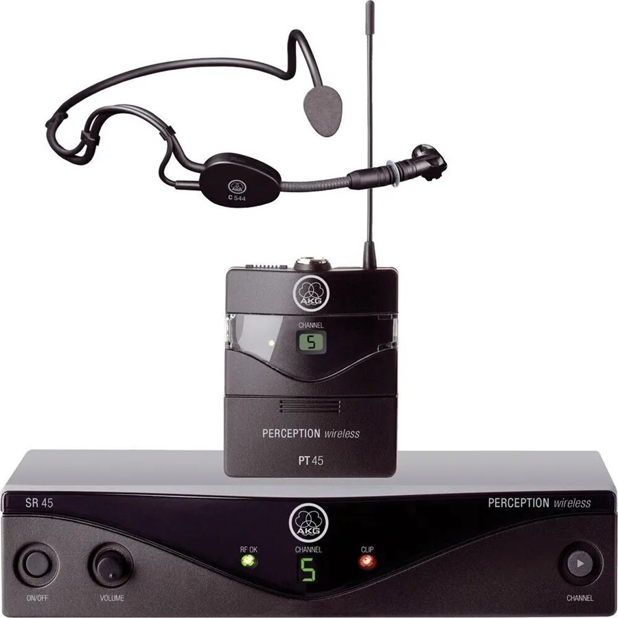 El sistema inalámbrico de deportes AKG Perception es un sistema de micrófono inalámbrico ligero y resistente que permite la máxima movilidad del usuario durante la instrucción de la clase deportiva y todas las demás aplicaciones manos libres. El sistema incluye el receptor inalámbrico SR 45, el transmisor bodypack PT 45 y el micrófono C 544 L.
