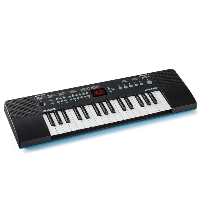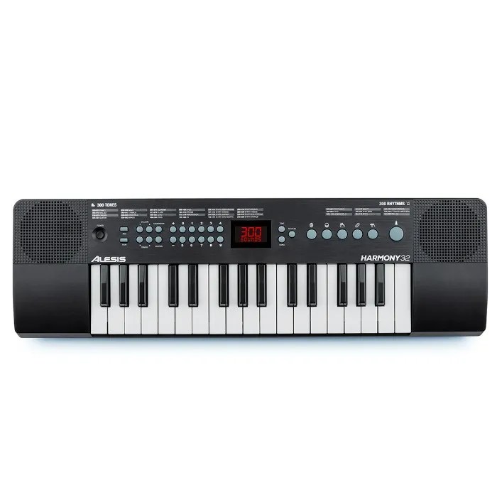 El ALESIS HARMONY32, Teclado portátil de 32 teclas con parlantes incorporados, tiene 300 tonos de alta calidad empaquetados en este piano pequeño. Hay una variedad de instrumentos tradicionales de piano y orquesta, pero también guitarras, tambores y efectos de sonido. Los parlantes incorporados proyectan cada nota con claridad, ya sea para una actuación en el hogar o para una práctica silenciosa. Conecte sus auriculares favoritos para silenciar automáticamente los altavoces incluye 40 canciones de demostración que son divertidas y fáciles de tocar para los principiantes. Para los más aventureros, hay un modo de acompañamiento con 300 ritmos incorporados. ¡Esta es la característica perfecta para cuando un profesor de piano, un amigo o un miembro de la familia quiere unirse a la diversión!